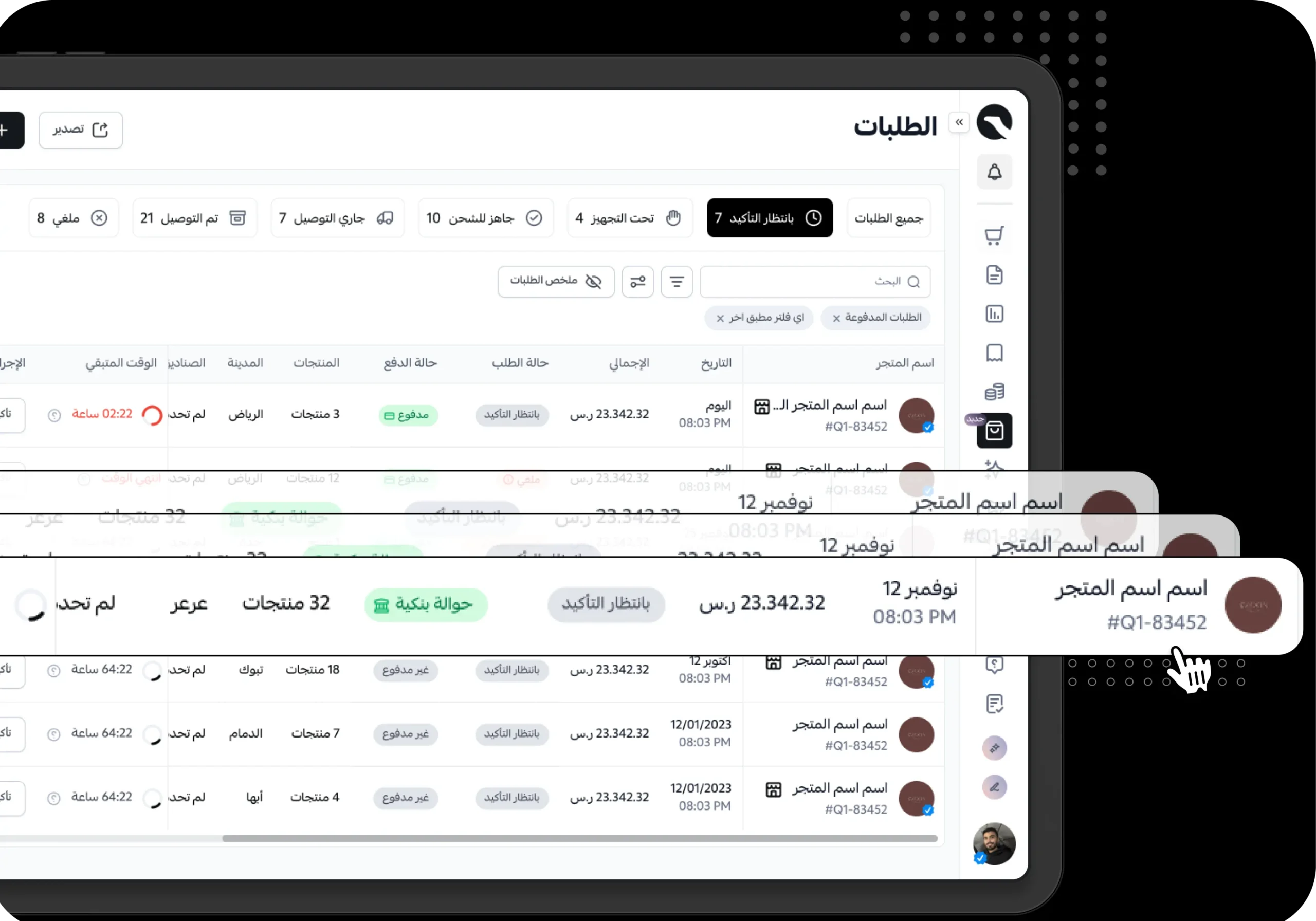 لا تخلي نقص الكاش يعطل تجارتك. موّل فواتيرك وأوامر الشراء وتشتري احتياجاتك بالآجل من موردين موثوقين من خلال نظام قوافل الذي يسهّل تقديم طلب تمويل الراجحي ومتابعته والحصول عليه.